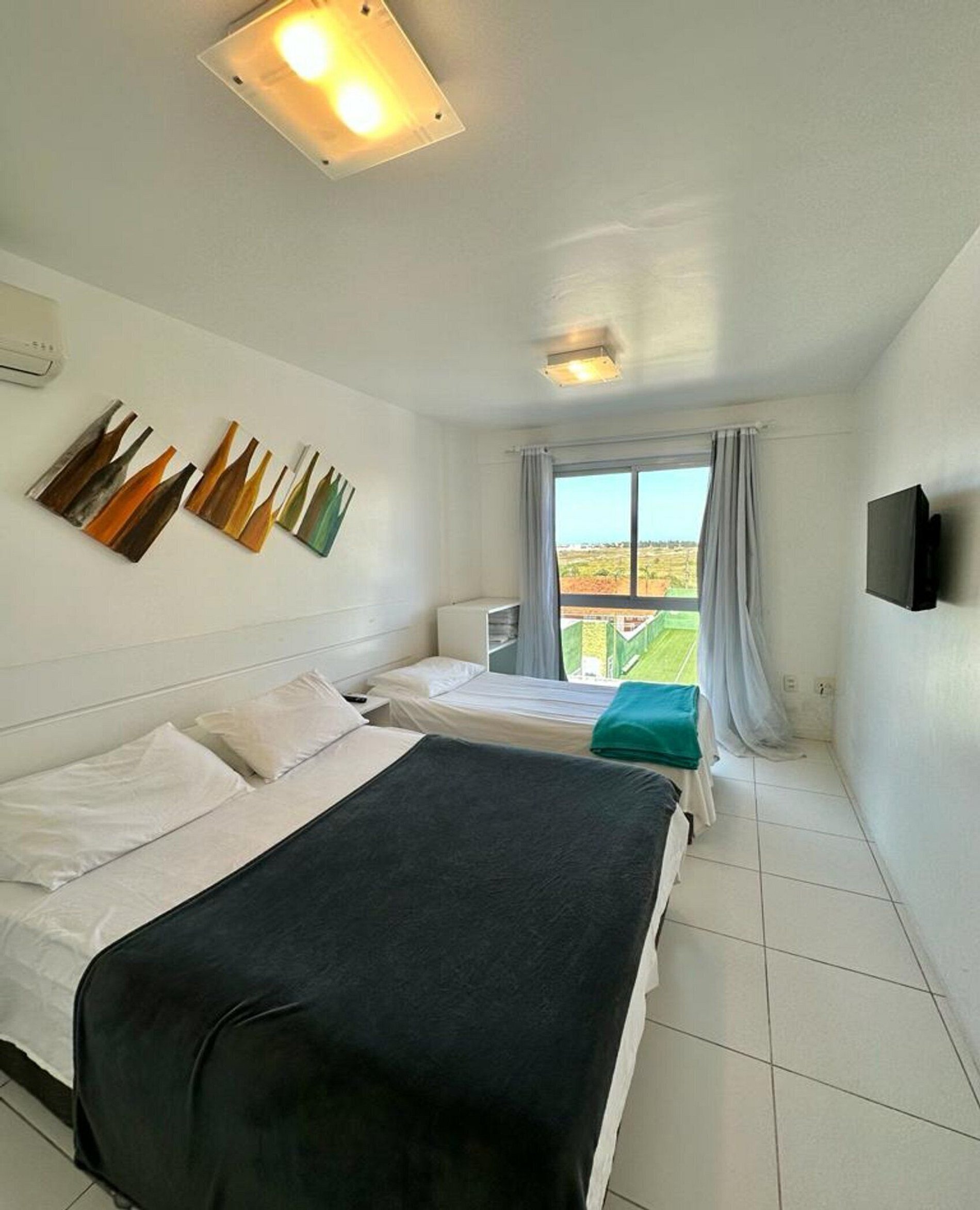 Quarto compartilhado com sala: uma cama casal, uma cama de solteiro, Tv 32", + ar condicionado - (3 pessoas).