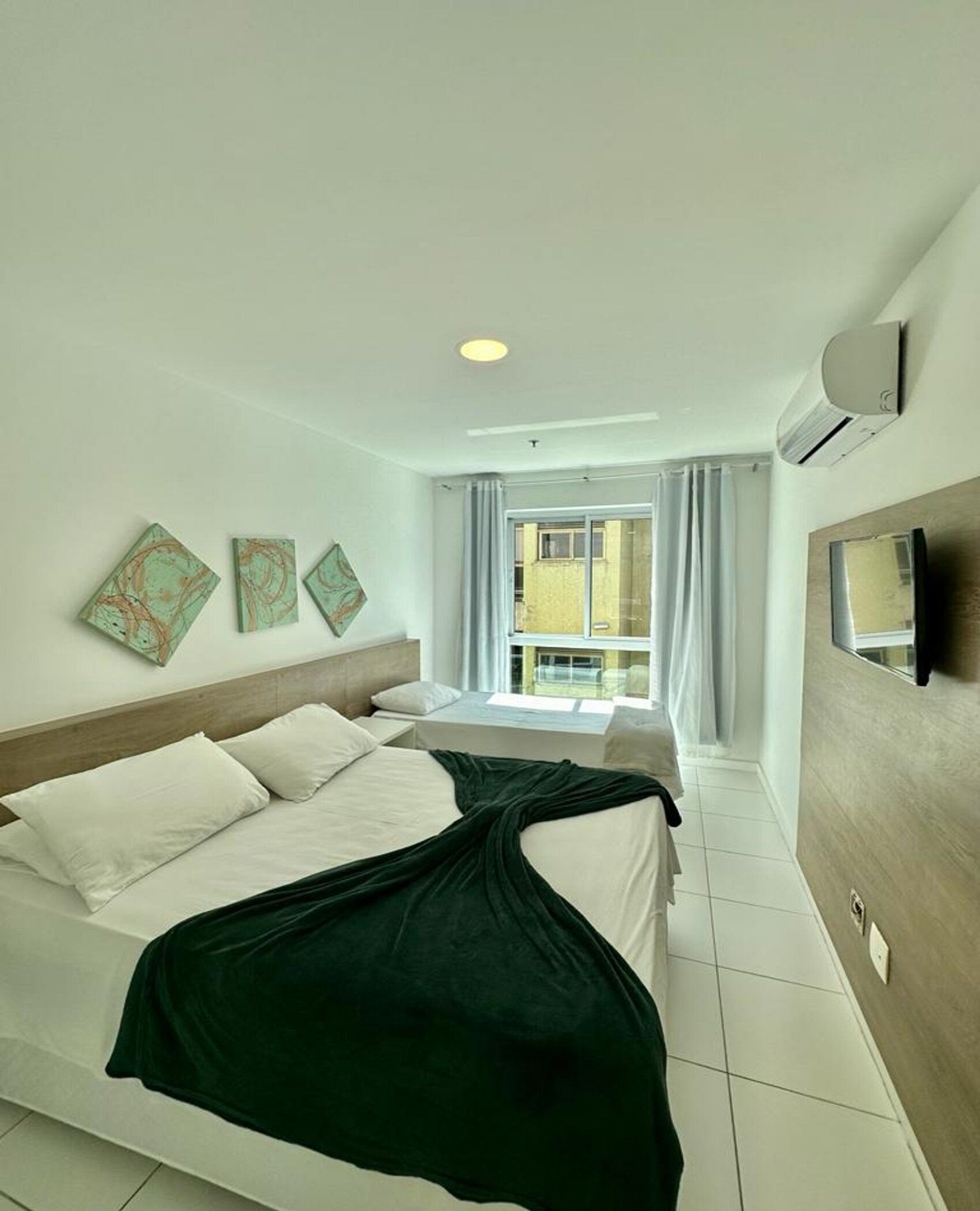 Quarto: uma cama casal, uma cama de solteiro, Tv 32", + ar condicionado - (3 pessoas).